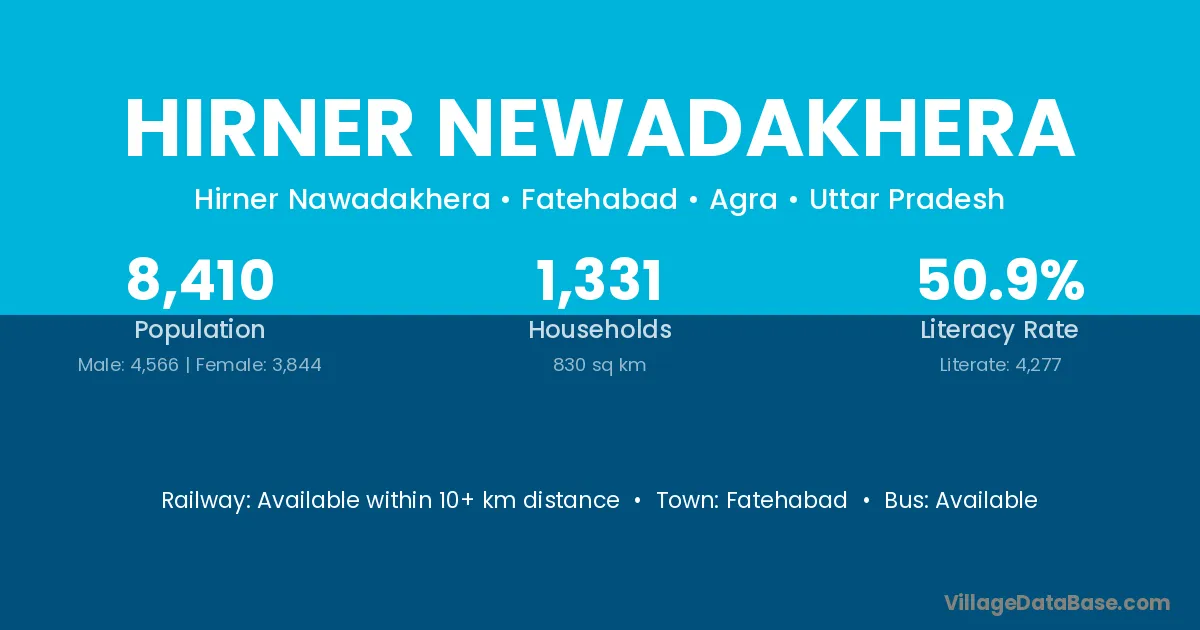 Hirner Newadakhera village is located in the Fatehabad Tehsil of the Agra district in Uttar Pradesh .