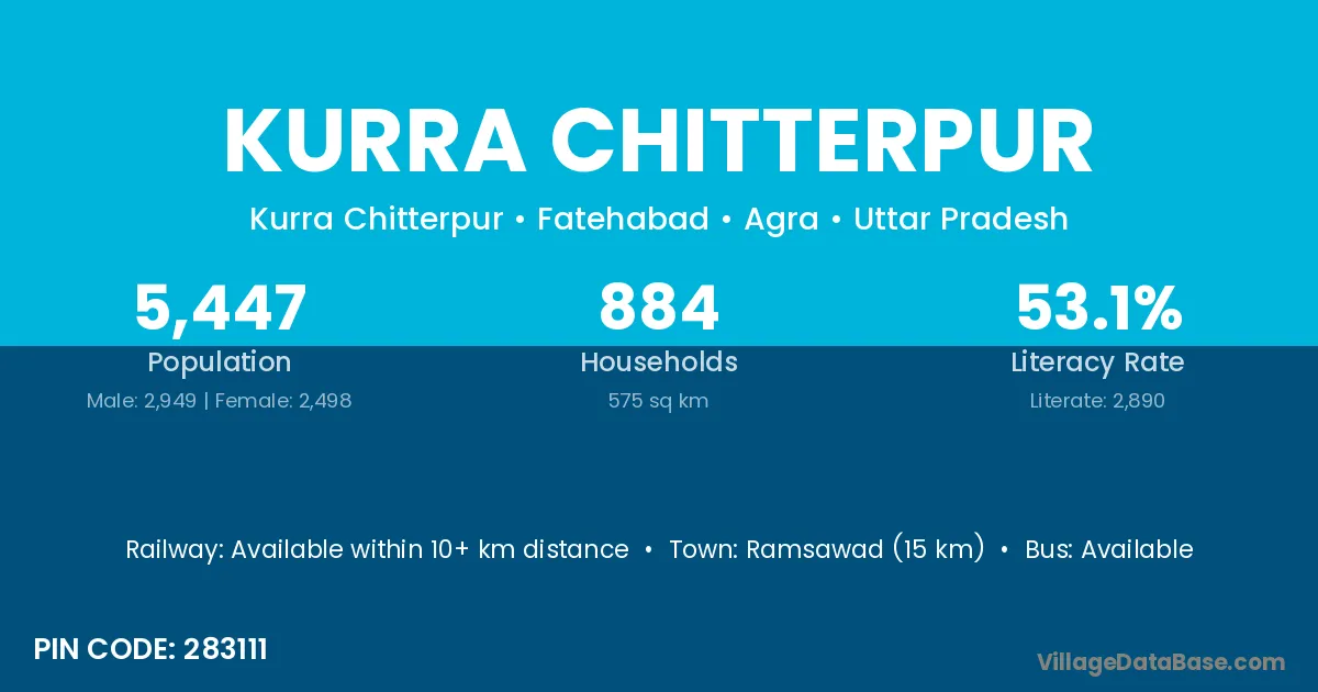 Ramsawad (15 km) is the nearest town to Kurra Chitterpur village for major economic activities and is located approximately 15 km away.