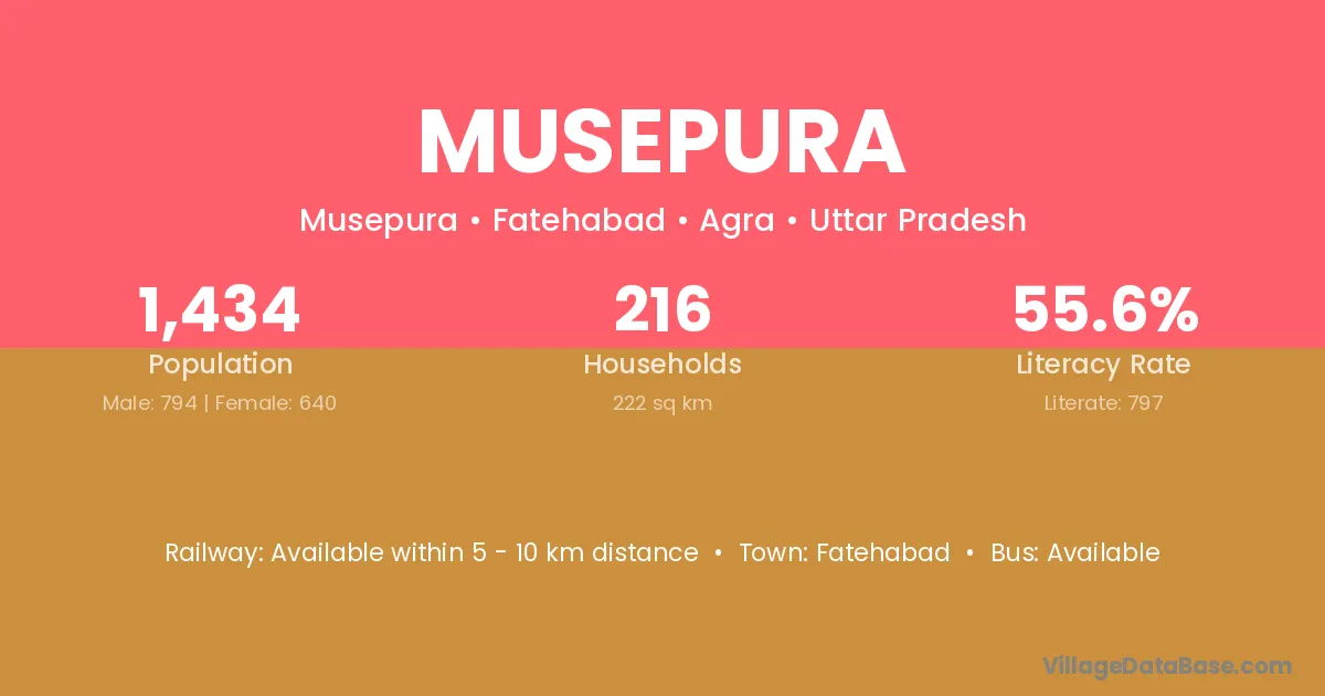 Musepura village has a total population of 1,434 people, of which 794 are males and 640 are females.