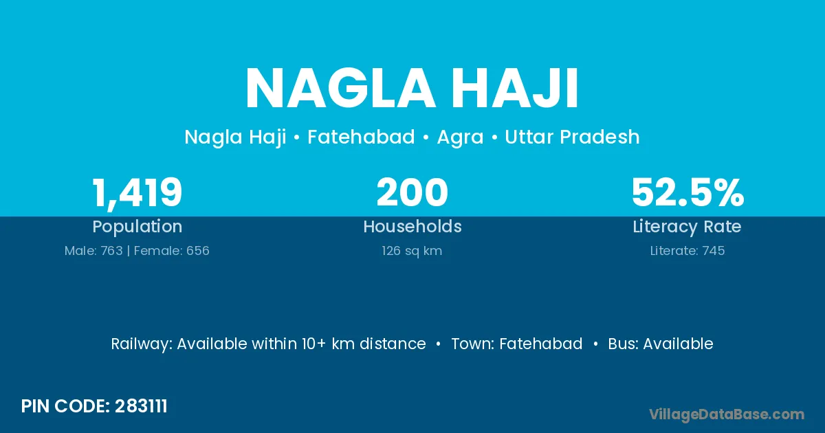 Fatehabad is the nearest town to Nagla Haji village for major economic activities