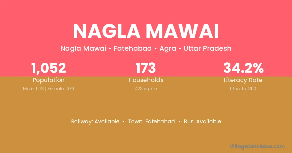 Nagla Mawai village has a total population of 1,052 people, of which 573 are males and 479 are females.