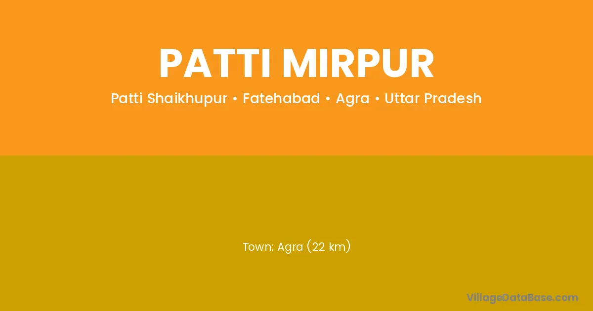 Agra (22 km) is the nearest town to Patti Mirpur village for major economic activities and is located approximately 22 km away.