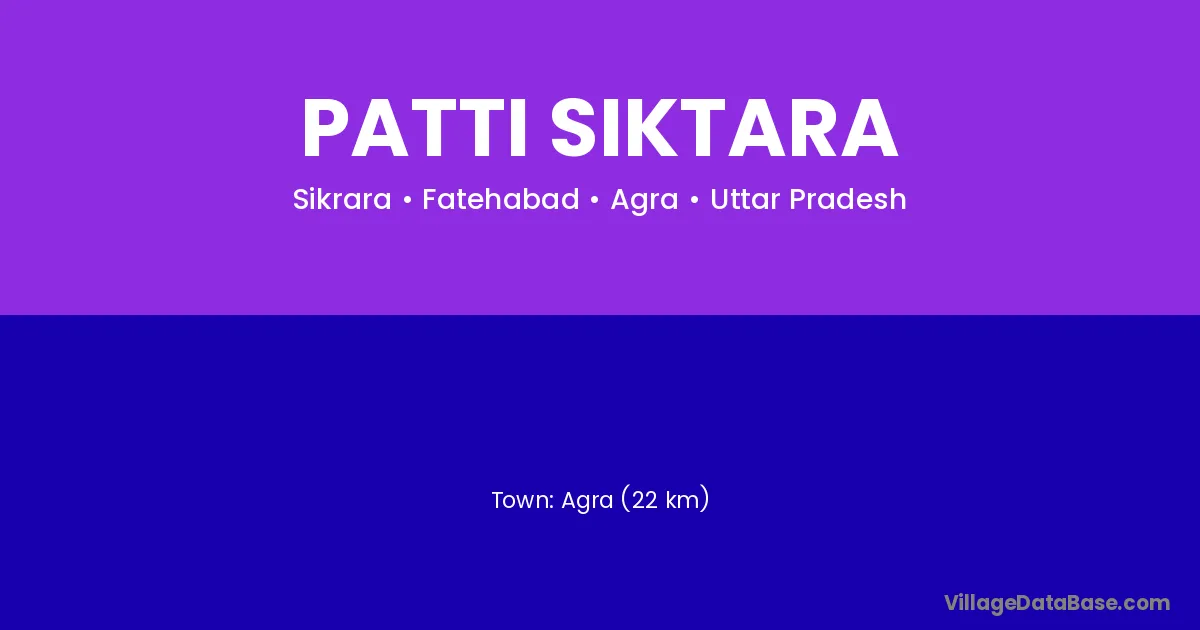 Agra (22 km) is the nearest town to Patti Siktara village for major economic activities and is located approximately 22 km away.