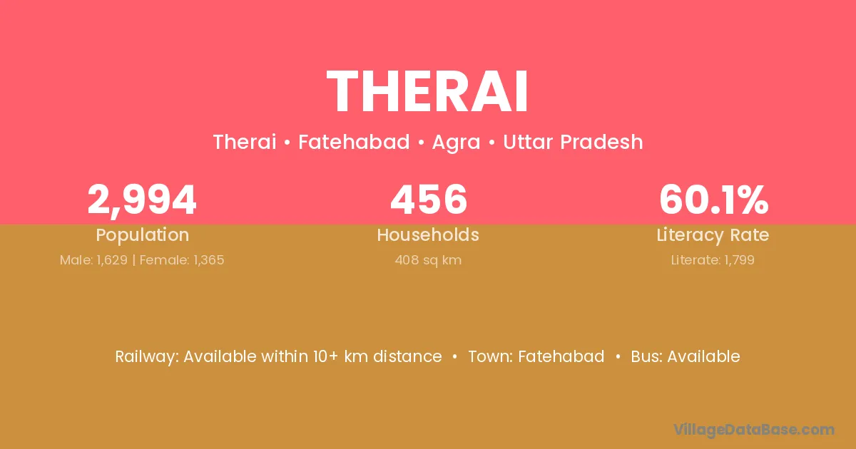 Therai village is located in the Fatehabad Tehsil of the Agra district in Uttar Pradesh .