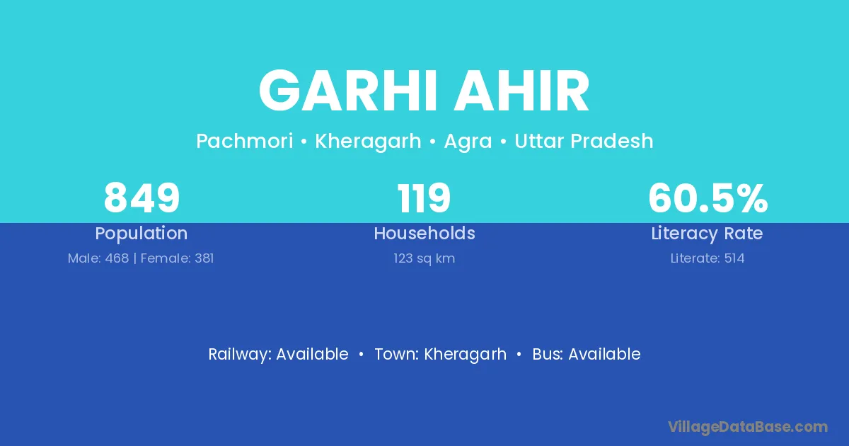 Kheragarh is the nearest town to Garhi Ahir village for major economic activities