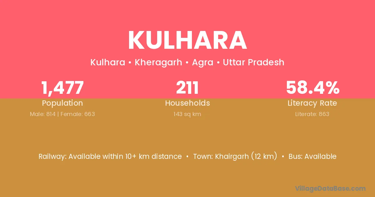 Kulhara village is located in the Kheragarh Tehsil of the Agra district in Uttar Pradesh .