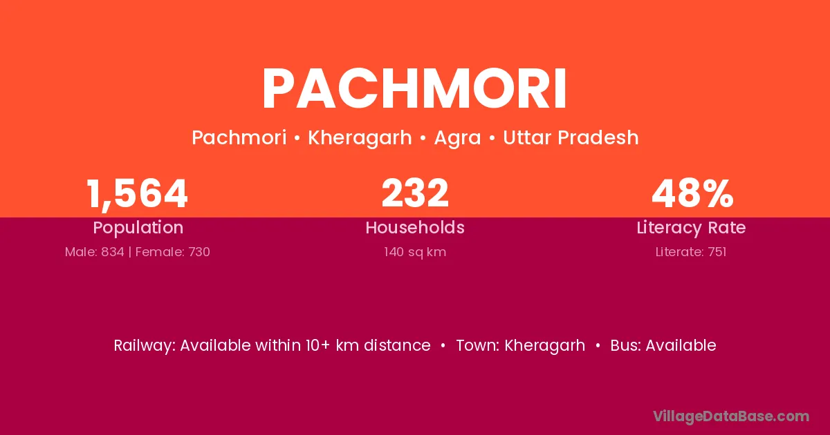 Pachmori village has a total population of 1,564 people, of which 834 are males and 730 are females.
