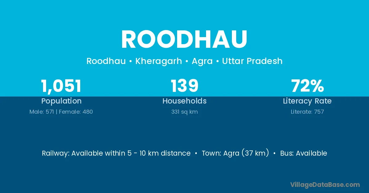Agra (37 km) is the nearest town to Roodhau village for major economic activities and is located approximately 37 km away.