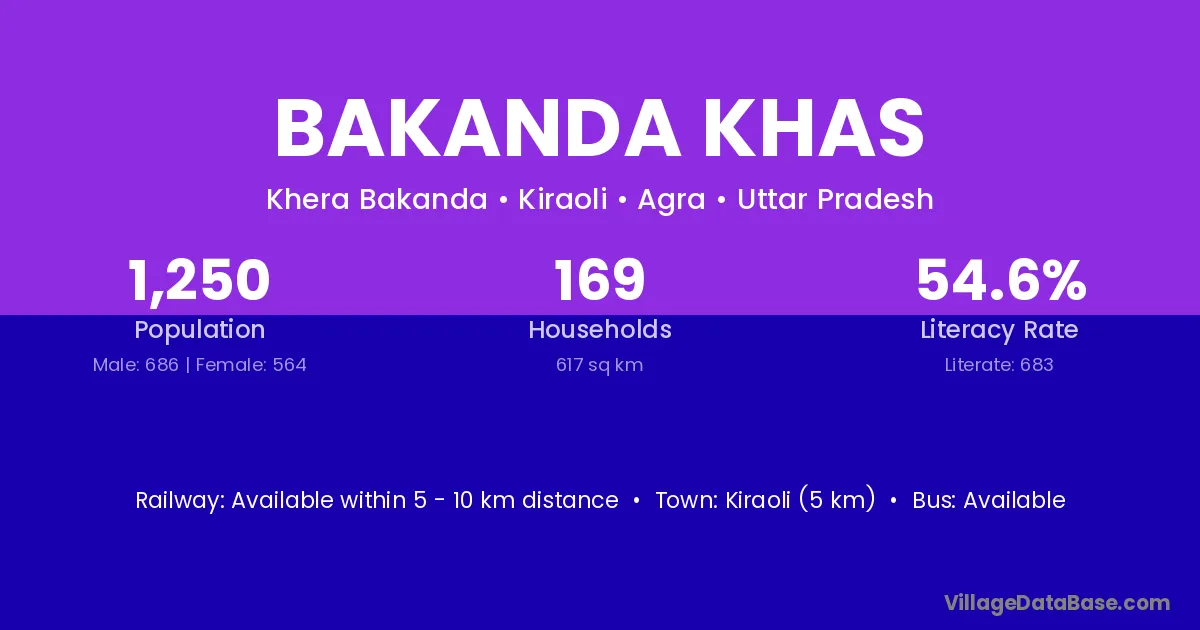 Bakanda Khas village is located in the Kiraoli Tehsil of the Agra district in Uttar Pradesh .