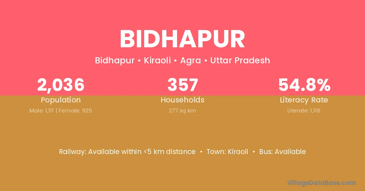 Bidhapur village is located in the Kiraoli Tehsil of the Agra district in Uttar Pradesh .