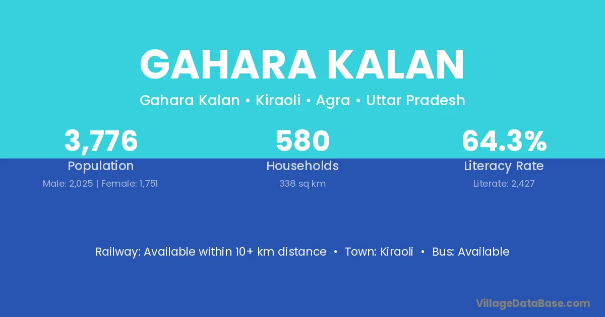 Kiraoli is the nearest town to Gahara Kalan village for major economic activities