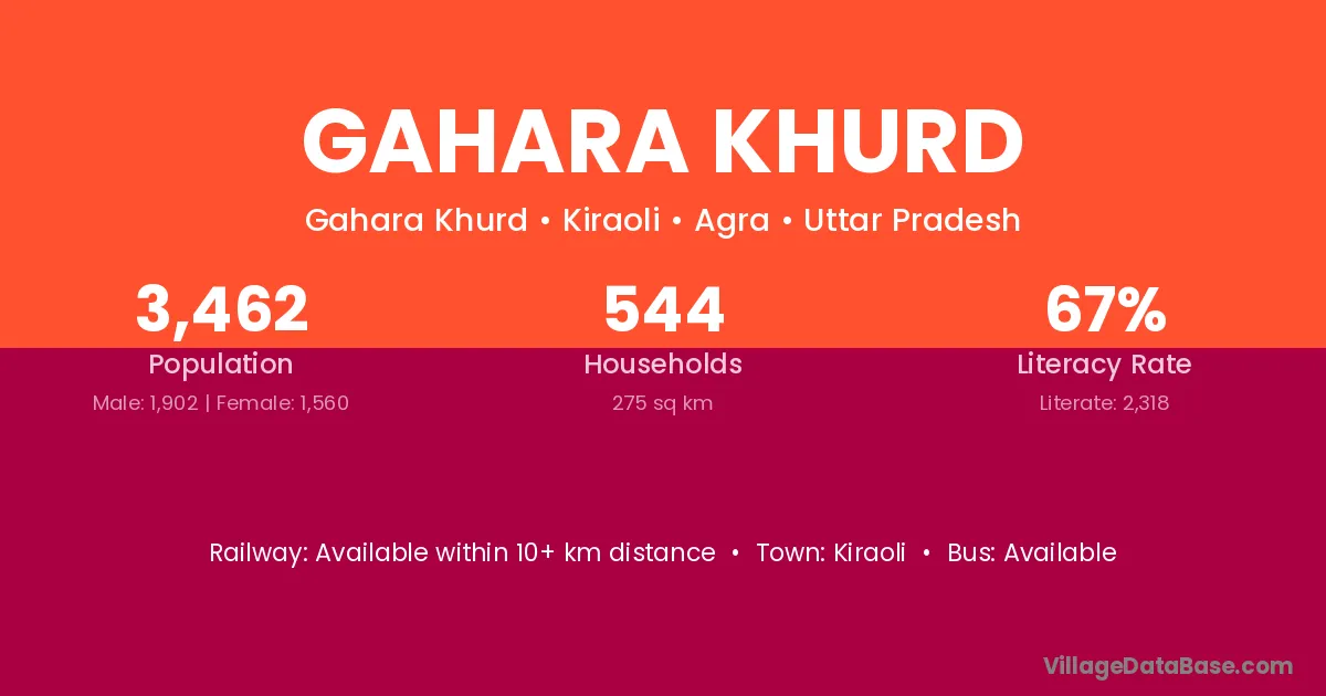 Kiraoli is the nearest town to Gahara Khurd village for major economic activities