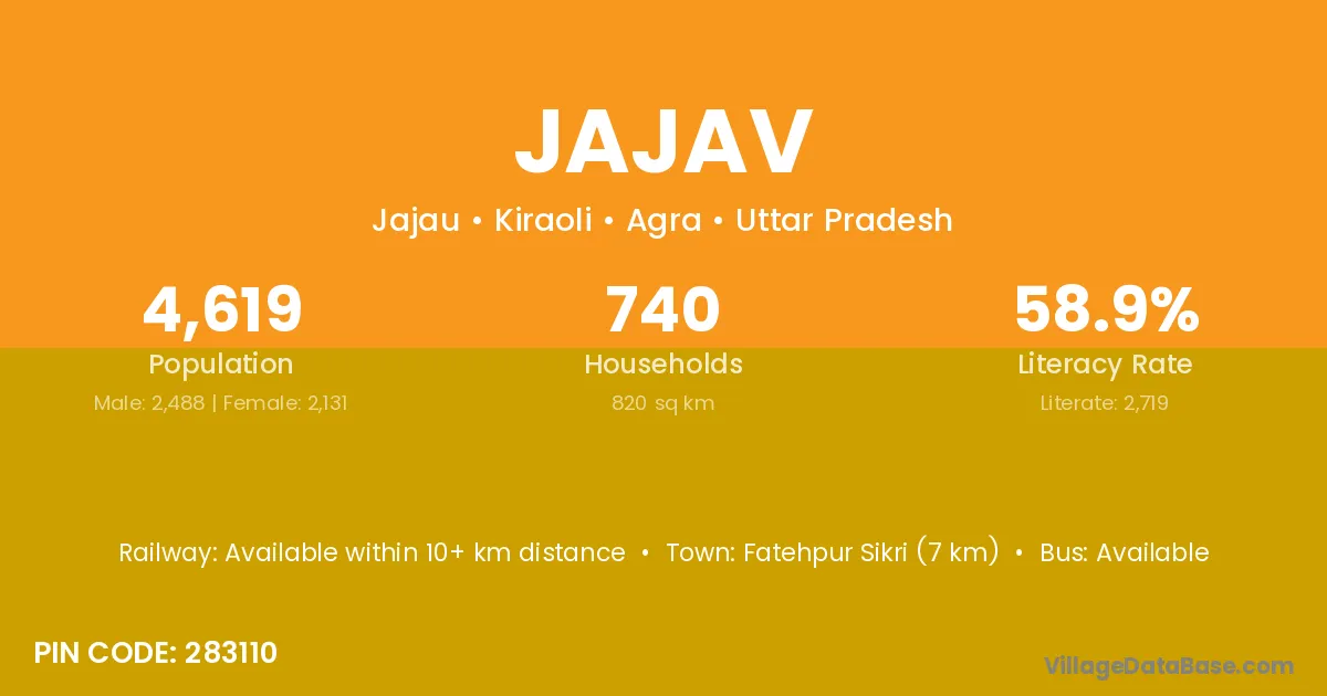Fatehpur Sikri (7 km) is the nearest town to Jajav village for major economic activities and is located approximately 7 km away.