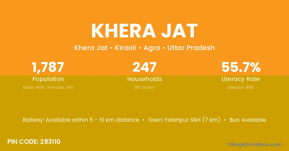Fatehpur Sikri (7 km) is the nearest town to Khera Jat village for major economic activities and is located approximately 7 km away.