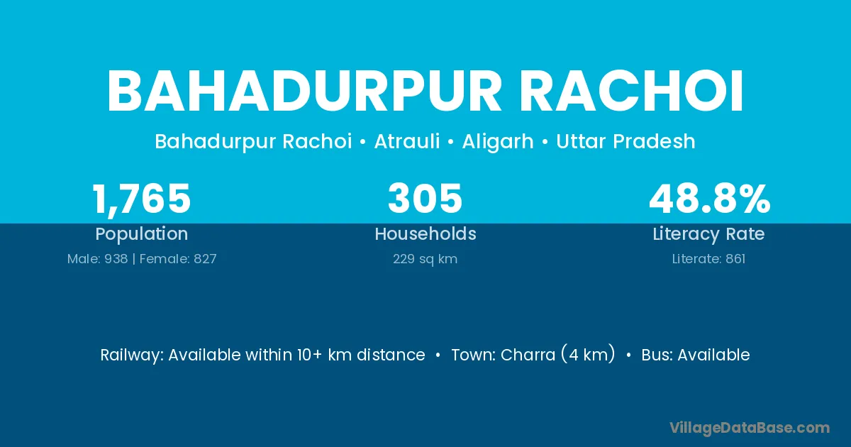 Bahadurpur Rachoi village has a total population of 1,765 people, of which 938 are males and 827 are females.