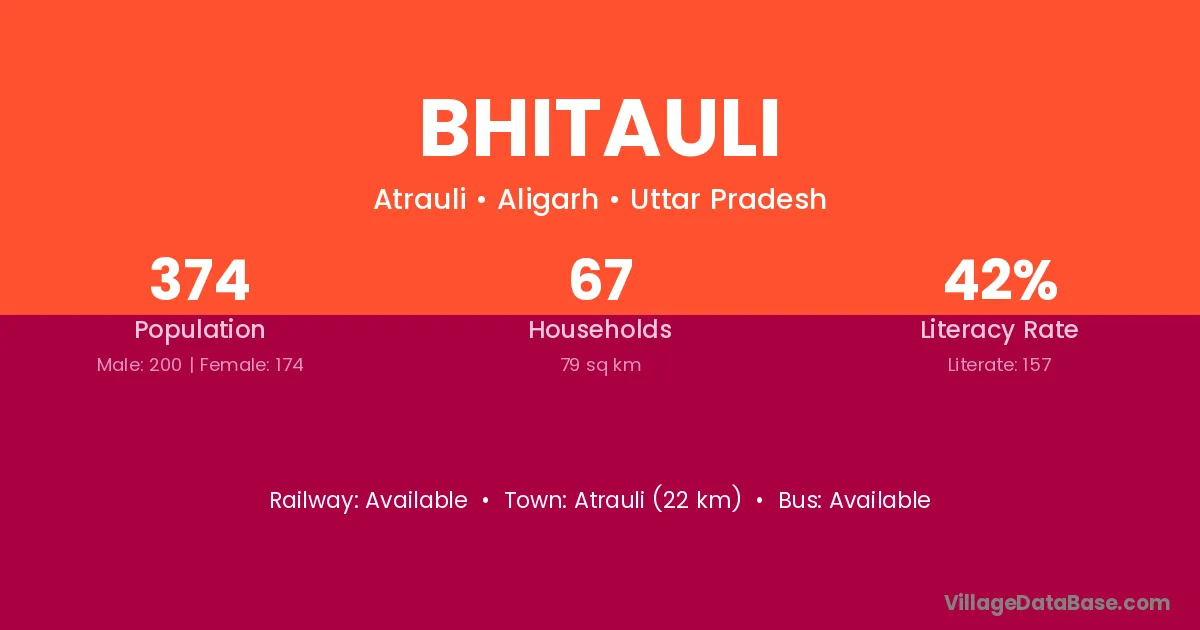 Atrauli (22 km) is the nearest town to Bhitauli village for major economic activities and is located approximately 22 km away.
