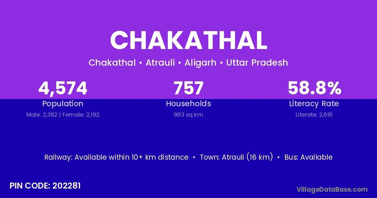 Atrauli (16 km) is the nearest town to Chakathal village for major economic activities and is located approximately 16 km away.