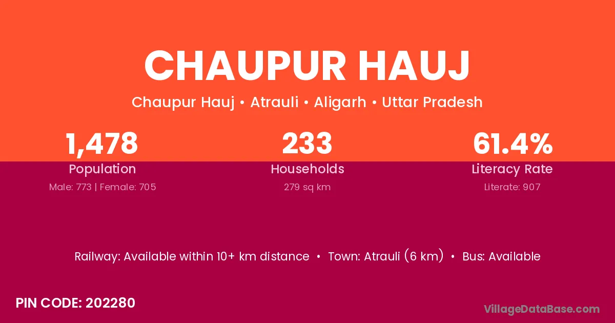 Atrauli (6 km) is the nearest town to Chaupur Hauj village for major economic activities and is located approximately 6 km away.