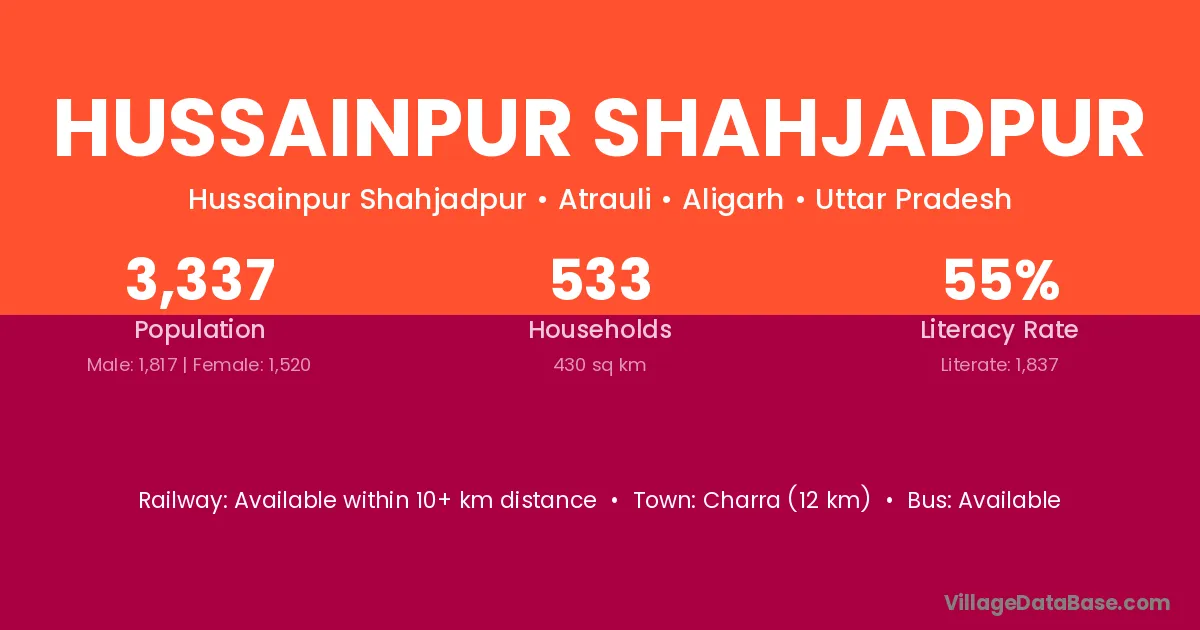 There are approximately 533 households in Hussainpur Shahjadpur village.