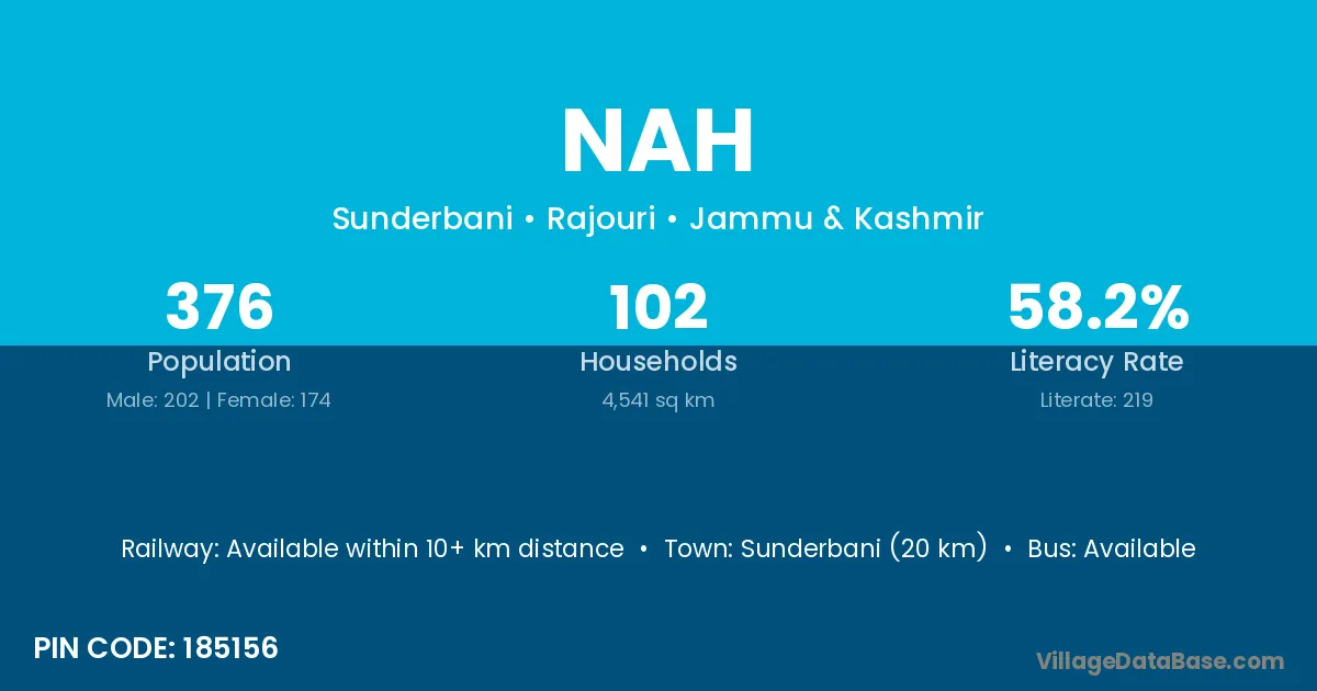 Charra (21 km) is the nearest town to Nah village for major economic activities and is located approximately 21 km away.