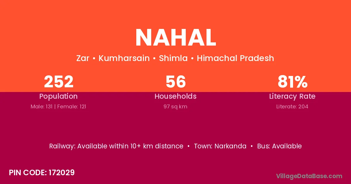 According to Census 2011 information, the village code of Nahal village is 202131.