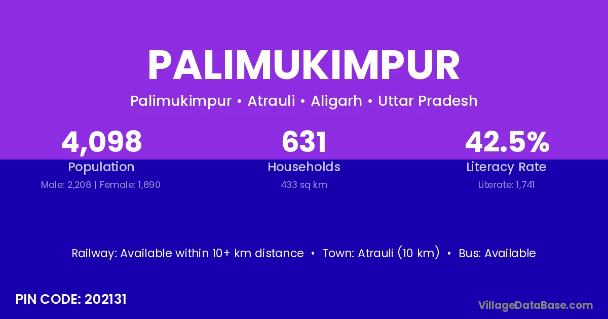 Atrauli (10 km) is the nearest town to Palimukimpur village for major economic activities and is located approximately 10 km away.