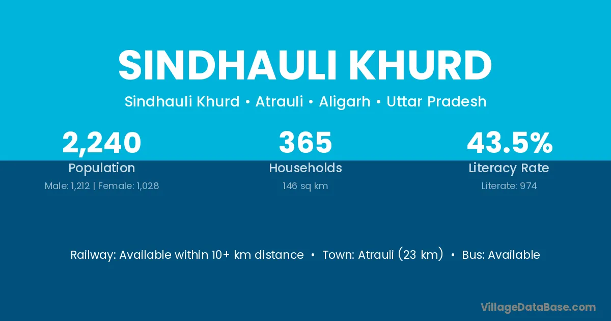 Atrauli (23 km) is the nearest town to Sindhauli Khurd village for major economic activities and is located approximately 23 km away.