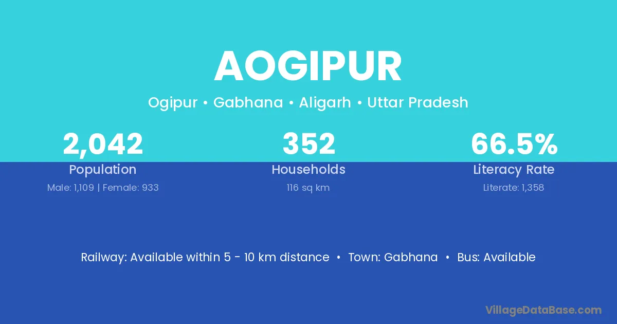 Aogipur village has a total population of 2,042 people, of which 1,109 are males and 933 are females.