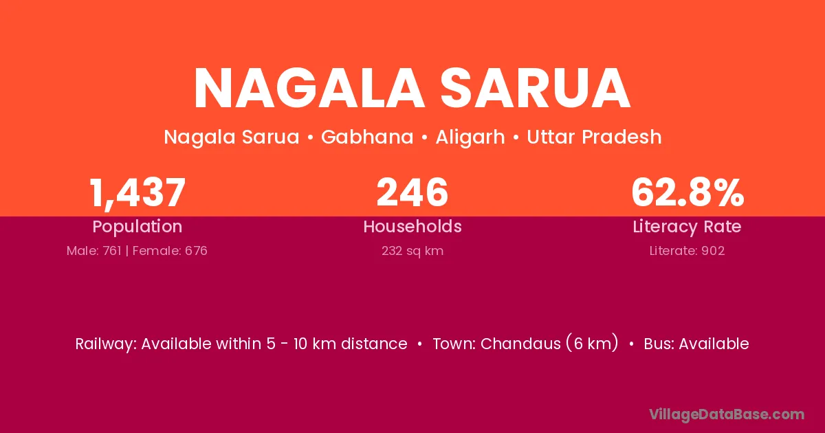 Nagala Sarua village has a total population of 1,437 people, of which 761 are males and 676 are females.