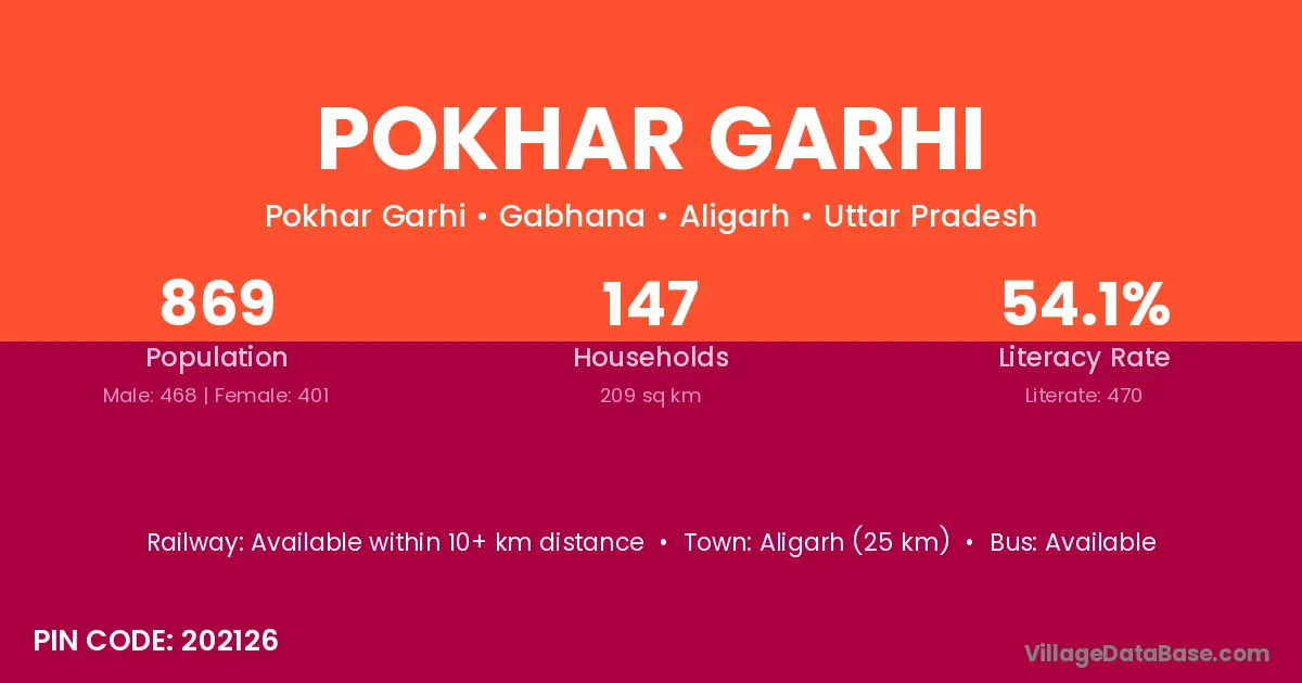 Aligarh (25 km) is the nearest town to Pokhar Garhi village for major economic activities and is located approximately 25 km away.