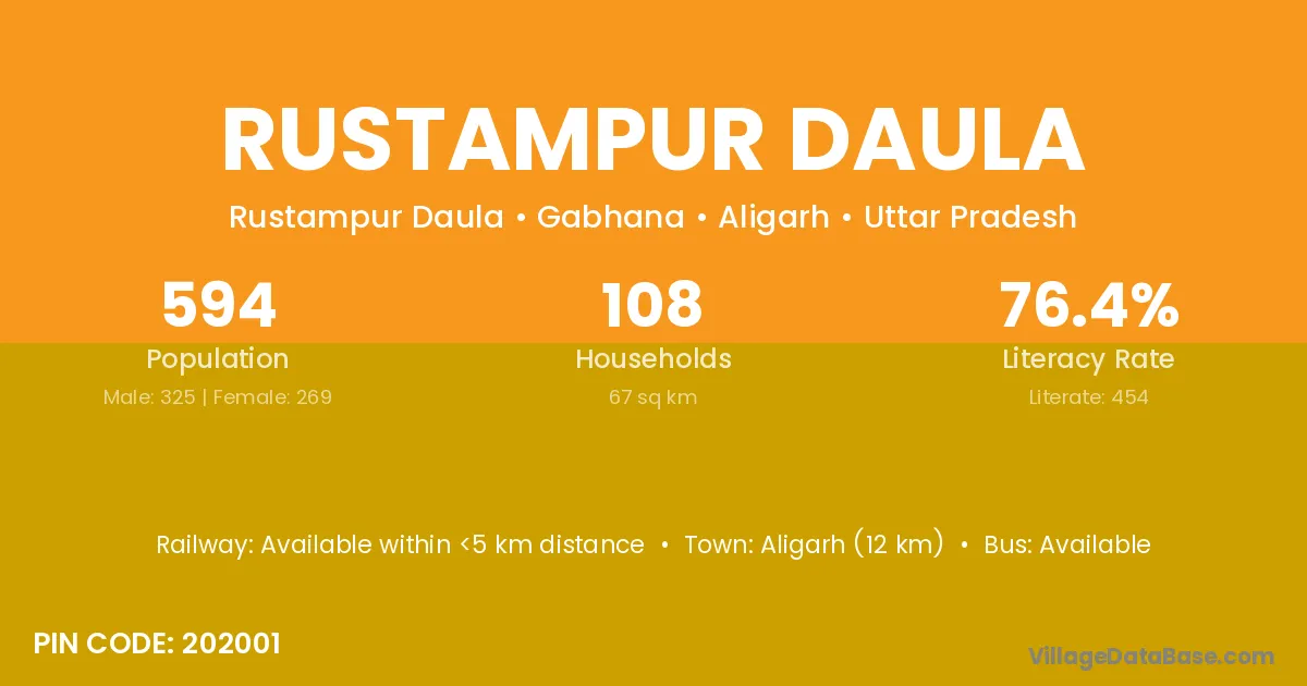 Aligarh (12 km) is the nearest town to Rustampur Daula village for major economic activities and is located approximately 12 km away.
