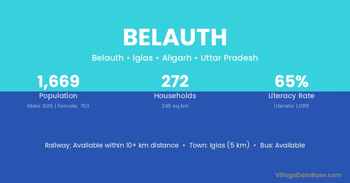 Iglas (5 km) is the nearest town to Belauth village for major economic activities and is located approximately 5 km away.