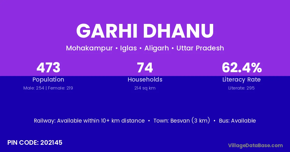 Besvan (3 km) is the nearest town to Garhi Dhanu village for major economic activities and is located approximately 3 km away.