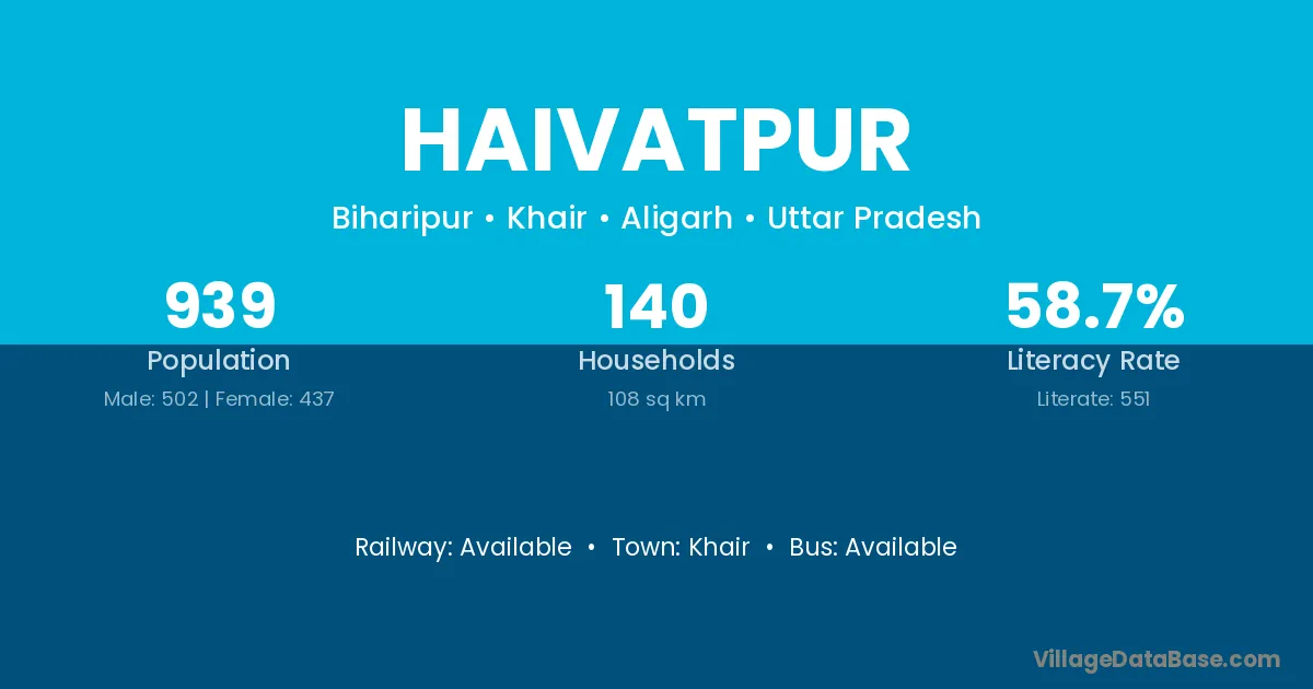Iglas (14 km) is the nearest town to Haivatpur village for major economic activities and is located approximately 14 km away.