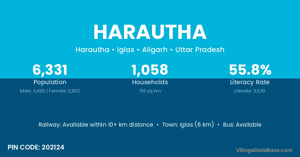 Iglas (6 km) is the nearest town to Harautha village for major economic activities and is located approximately 6 km away.