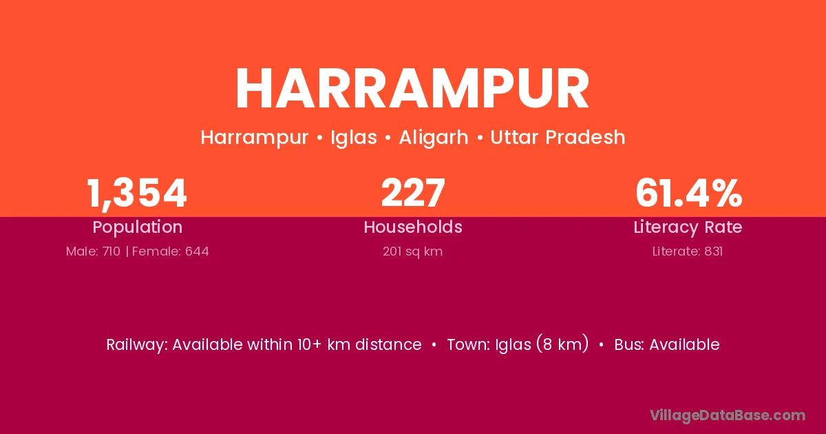 Iglas (8 km) is the nearest town to Harrampur village for major economic activities and is located approximately 8 km away.