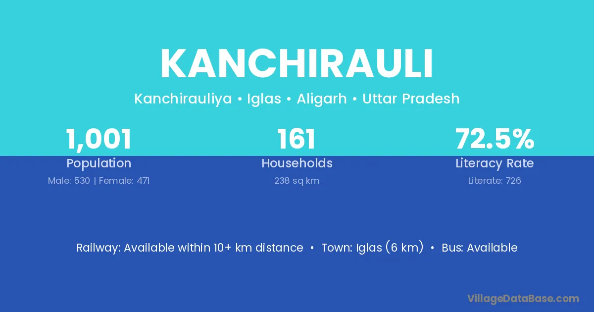 Iglas (6 km) is the nearest town to Kanchirauli village for major economic activities and is located approximately 6 km away.