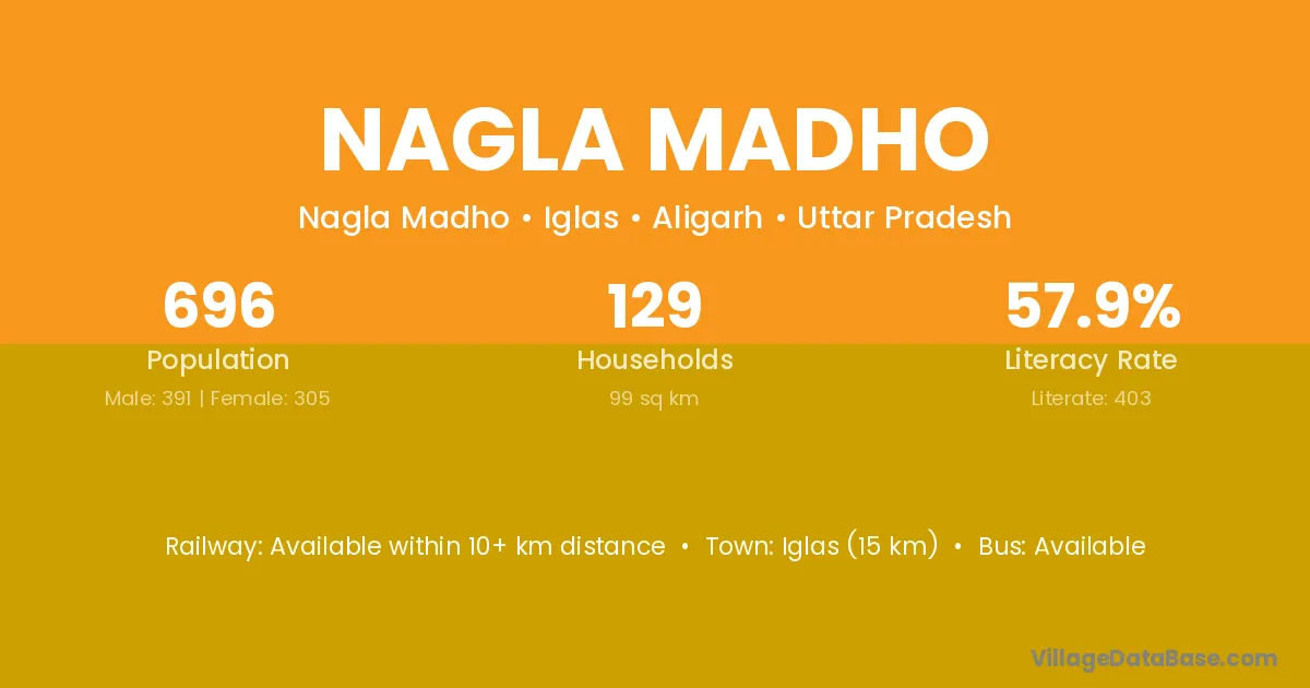 Iglas (15 km) is the nearest town to Nagla Madho village for major economic activities and is located approximately 15 km away.
