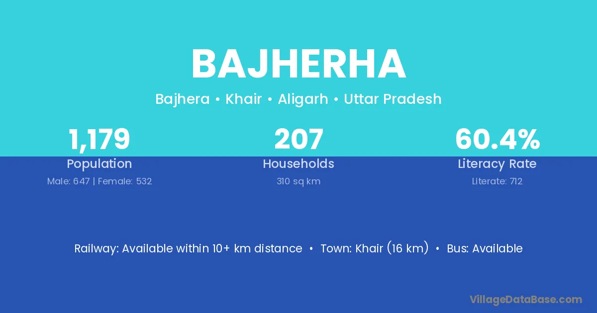 Khair (16 km) is the nearest town to Bajherha village for major economic activities and is located approximately 16 km away.