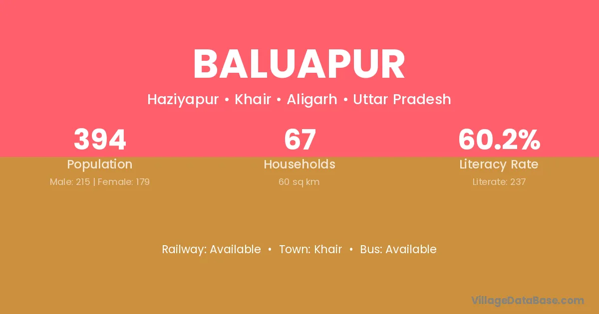 Baluapur village has a total population of 394 people, of which 215 are males and 179 are females.