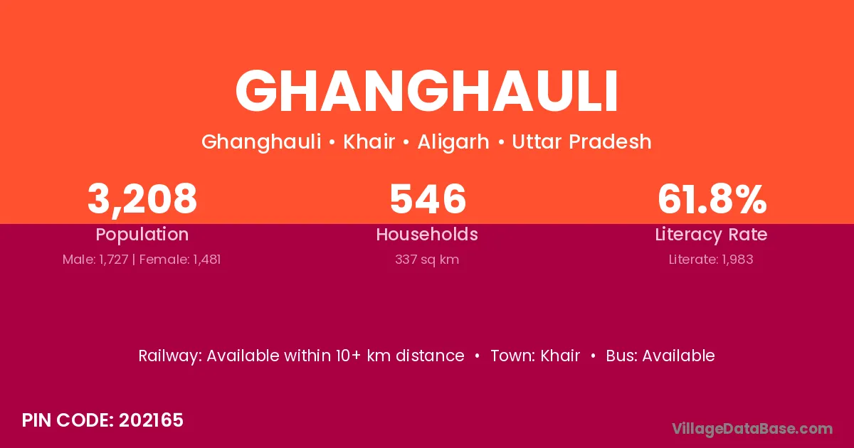 Khair is the nearest town to Ghanghauli village for major economic activities