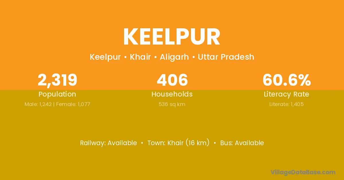 Khair (16 km) is the nearest town to Keelpur village for major economic activities and is located approximately 16 km away.
