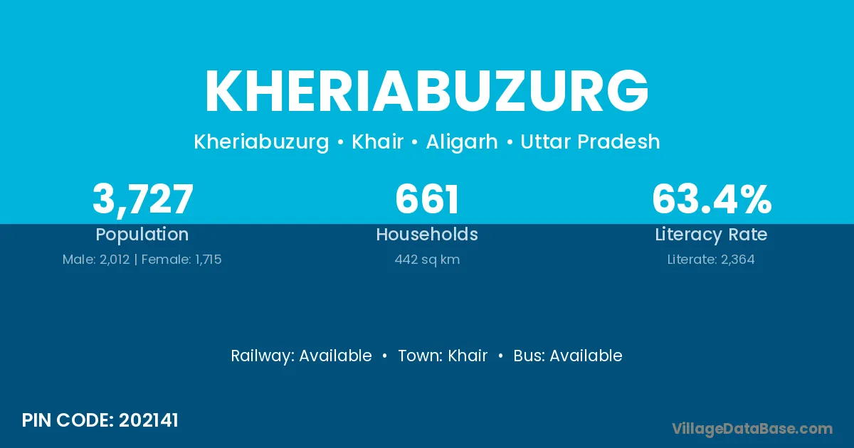 Kheriabuzurg village has a total population of 3,727 people, of which 2,012 are males and 1,715 are females.