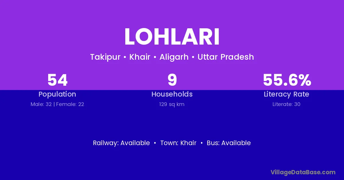 The literacy rate of Lohlari village is 55.56%. Male literacy stands at 65.63% and female literacy at 40.91%.