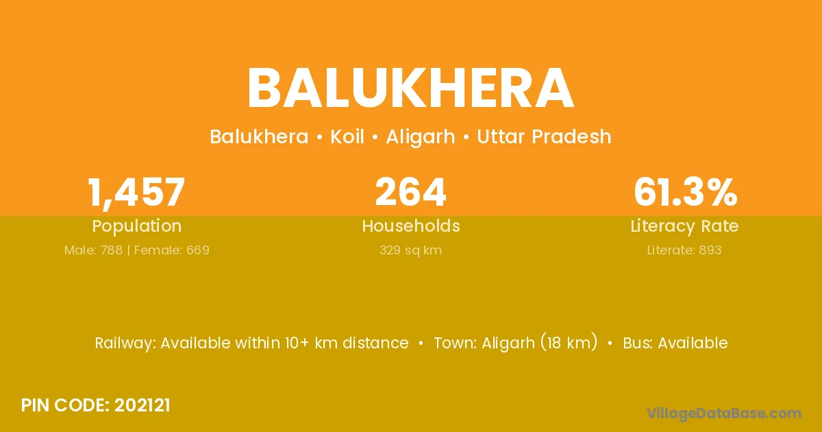Aligarh (18 km) is the nearest town to Balukhera village for major economic activities and is located approximately 18 km away.