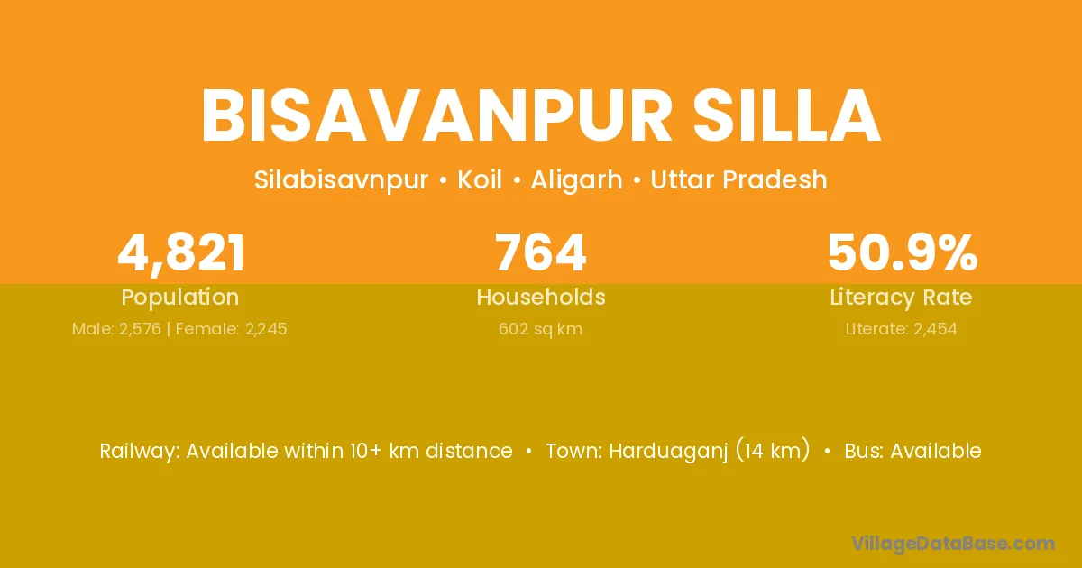 Harduaganj (14 km) is the nearest town to Bisavanpur Silla village for major economic activities and is located approximately 14 km away.