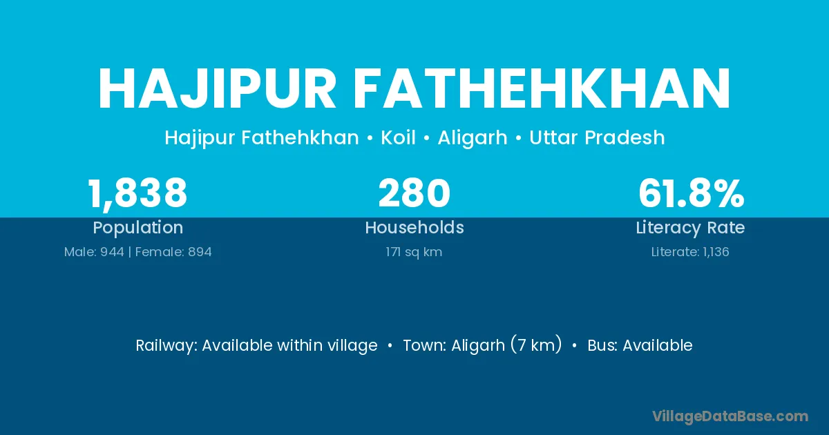 Aligarh (7 km) is the nearest town to Hajipur Fathehkhan village for major economic activities and is located approximately 7 km away.