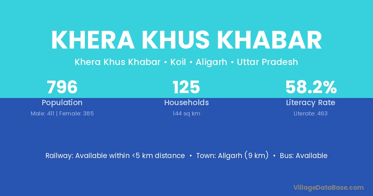 Aligarh (9 km) is the nearest town to Khera Khus Khabar village for major economic activities and is located approximately 9 km away.