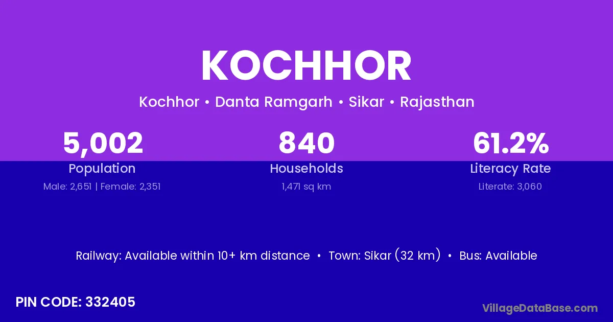 According to Census 2011 information, the village code of Kochhor village is 202002.