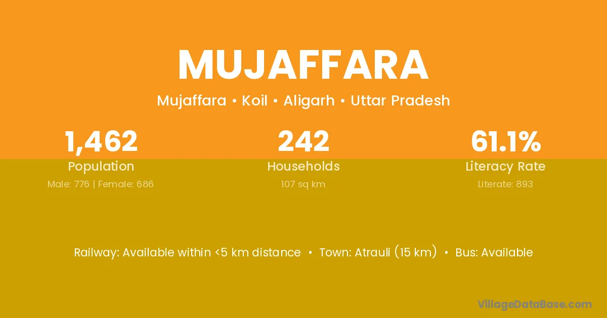 Atrauli (15 km) is the nearest town to Mujaffara village for major economic activities and is located approximately 15 km away.